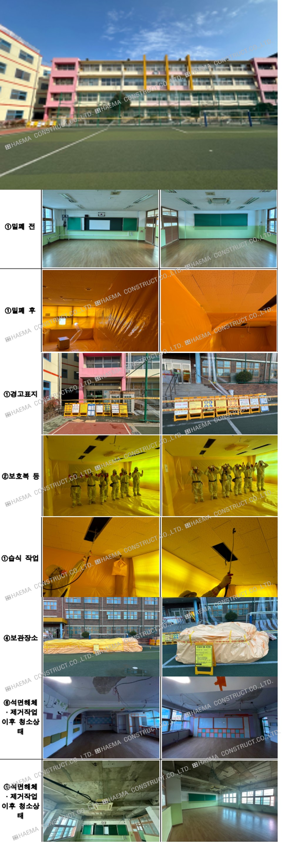 [현장명] 서울영신초등학교 동관 및 신관동 석면해체 제거공사 [공사기간] 2023.12.31~2024.01.28 [발주처/원도급] 서울남부교육지원청