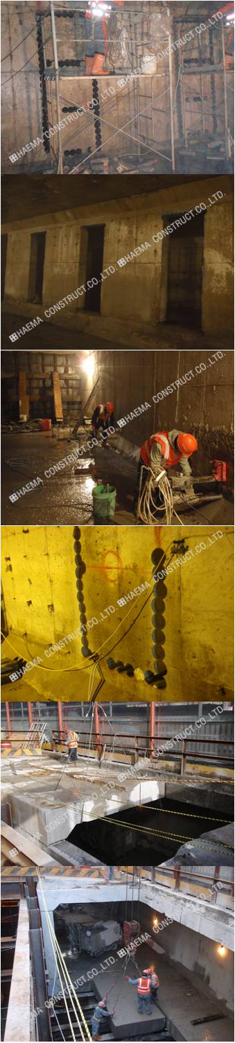 [현장명] 지하철 7호선 연장 703공구 건설공사 [공사명] 하수 BOX 부분 철거공사 [공사기간] 2010.03.19 ~ 2010.07.31 [발주처] 서울특별시 지하철건설본부 / (주)대우건설 #코아천공(연공) #휠쏘절단작업 #D.W.S 절단작업 #인양작업